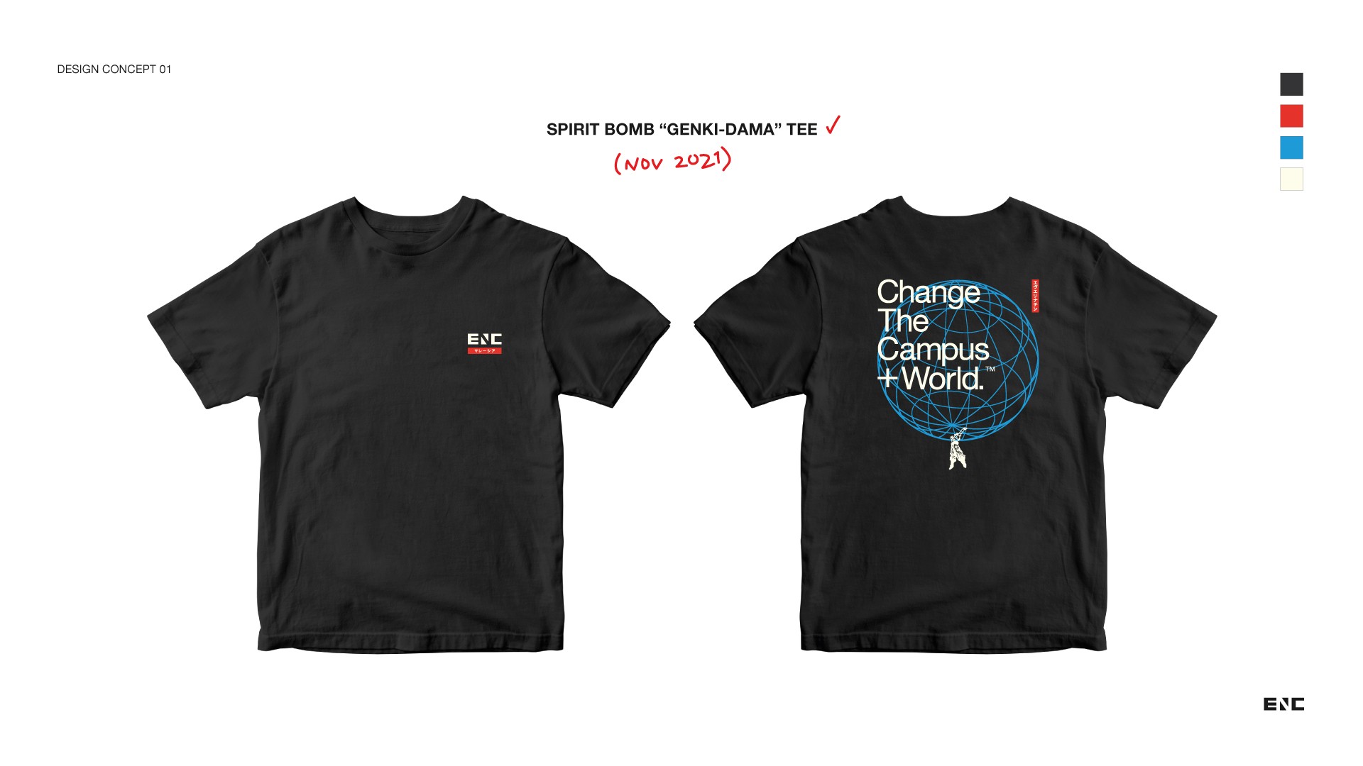 After four weeks of research, brainstorming, and designing, I created designs inspired by Uniqlo’s minimalism and Japanese pop culture. The Every Nation Campus team and I selected the two chosen designs for the “Nihon” collection - the “Genki-Dama” black tee inspired by Dragon Ball and the “Futuristic Minimal” beige tee inspired by modern Japanese minimalism. The designs also incorporated Japanese Kanji.